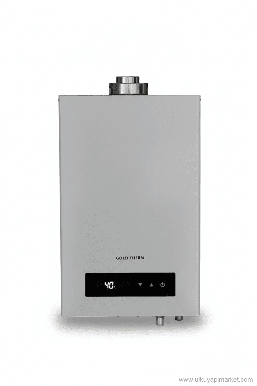23 kW ısı gücü ve 12 L/dk kapasitesiyle güçlü sıcak su performansı sunan Gold Therm G120, düşük NOx emisyonu ve dijital kontrol paneli ile güvenli ve ekonomik kullanım sağlar.